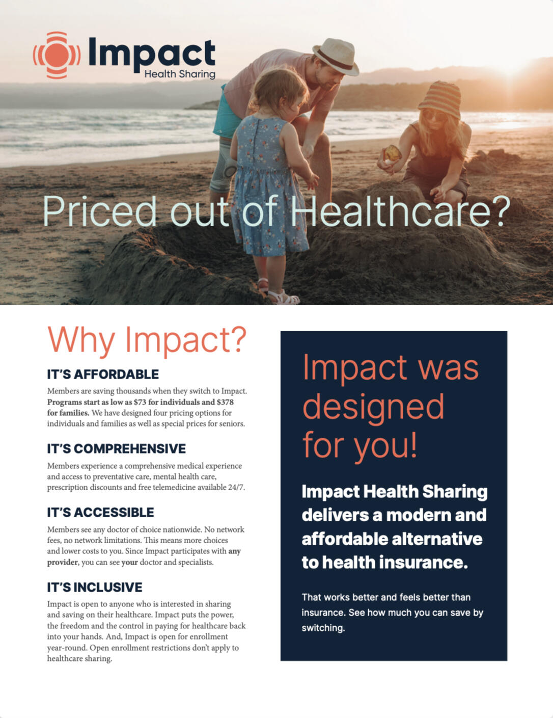 Finally, a way to take control of your healthcare expenses. Impact Health Sharing is a caring community of people who share in each other's medical bills. Impact is for anyone who is interested in sharing, acting responsibly together, and saving on their health care.